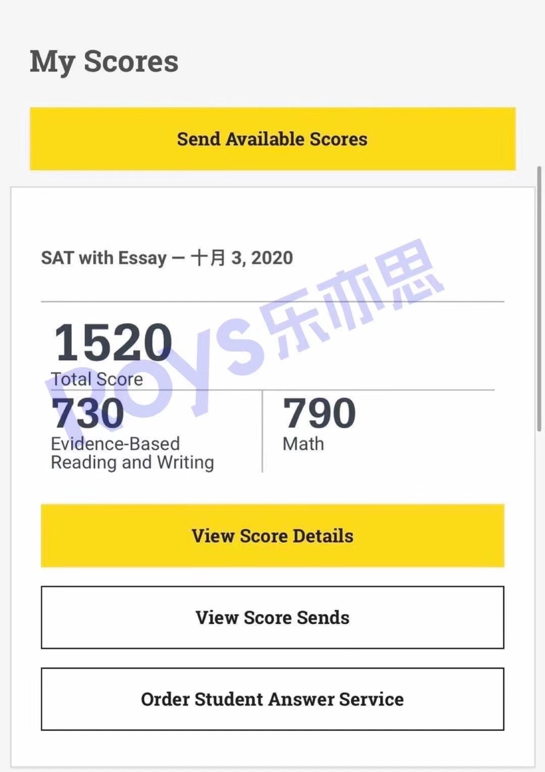 今天我們Roys樂(lè)亦思10月SAT考試的第1位高分學(xué)員來(lái)是?自去年暑假班程全?的美高Z同學(xué),次本?考試拿下1520分的高分!這是也?樂(lè)亦思累第計(jì)?833位1500+的高分員學(xué)?,去年全束結(jié)?程班學(xué)習(xí)后,不斷備考。今和季春?年暑假再進(jìn)次?行集中培訓(xùn),老在?師和督助幫的導(dǎo)?下,全力下拿刺沖?SAT1520的高分!同時(shí)Z同學(xué)也在Roys培訓(xùn)福托?拿下116分的絕高對(duì)?分,祝賀你?。?!祝申請(qǐng)順利??!