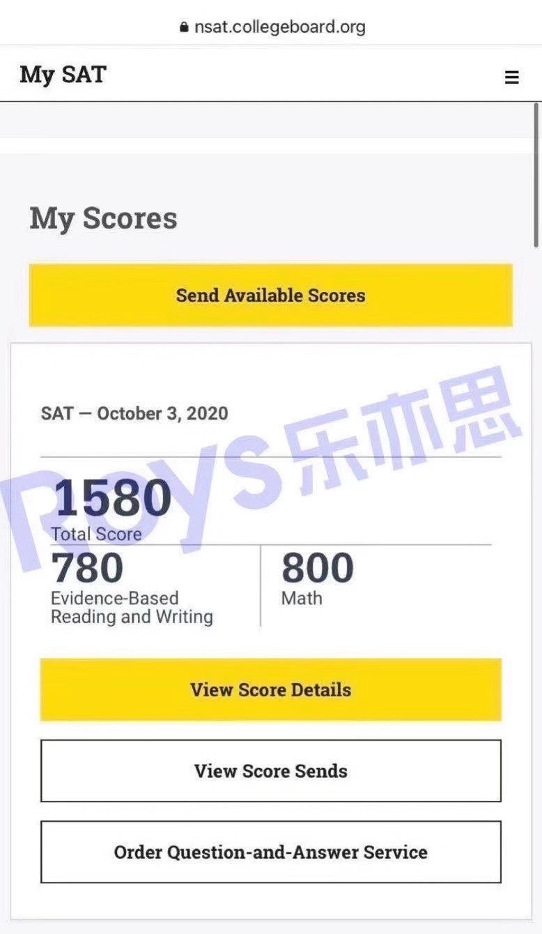 今?我天?們Roys樂亦思10月SAT考?的試?第3位高分學(xué)員是?自來?去年?假暑?全程班的D同學(xué),本?考次?試拿下1580分?絕的?對高?!分?這也是樂亦思累計第163位1550+的高分?員學(xué)?,疫情?間期?一直堅持?考備?,在?師老?和督?的導(dǎo)?不斷跟進下,本?考次?試拿下了1580分的高?!分?!祝你?請申?順利?。?!