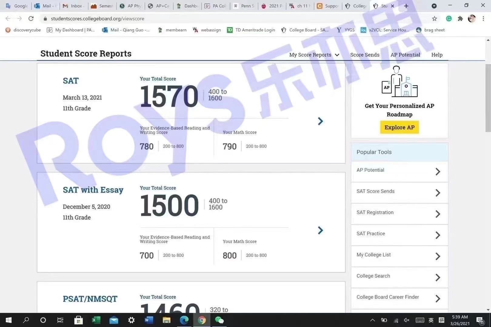 Roys樂亦思3月SAT考?的試?第5位高?學(xué)分?員是來自美高的G同?,學(xué)?也是?們我?第172位1550+的高分學(xué)?!員?