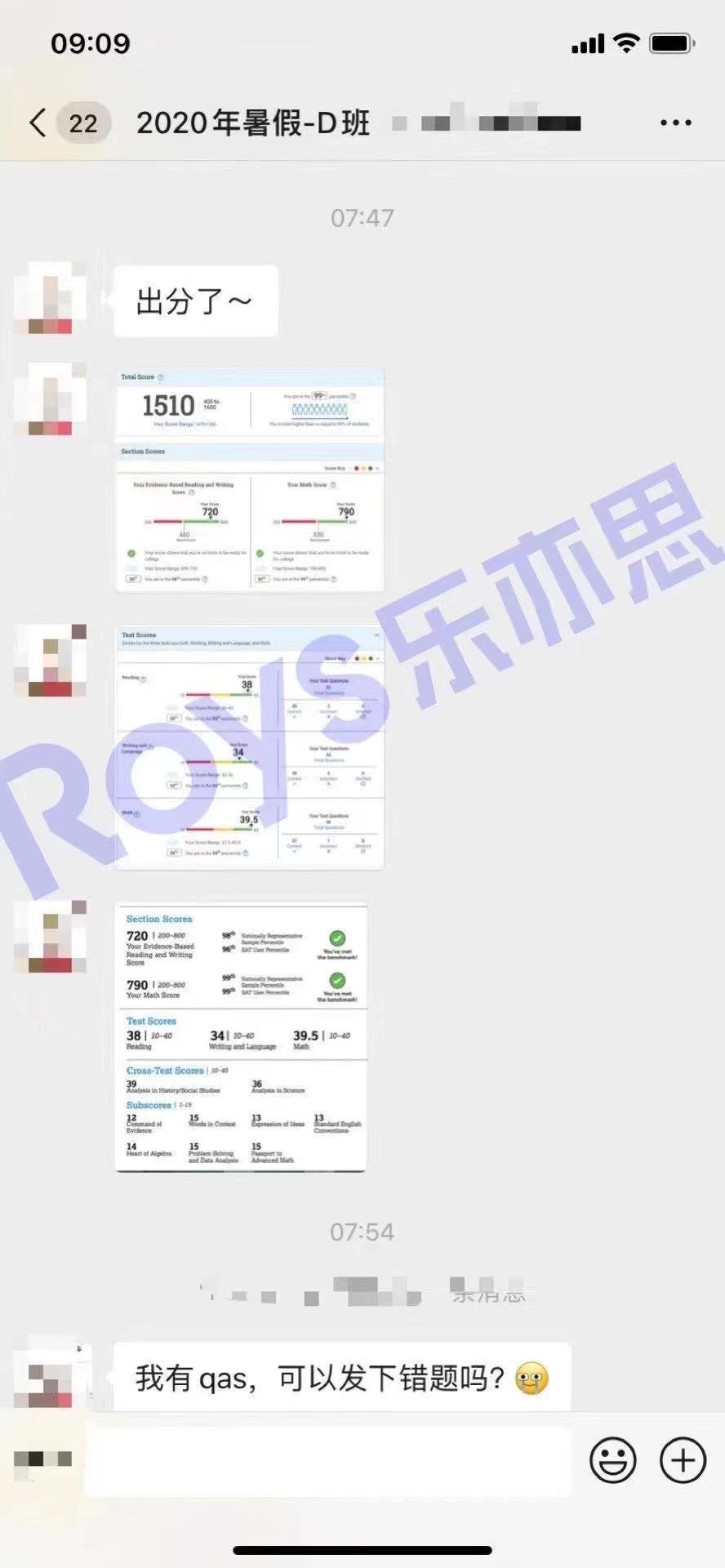 Roys樂亦思3月SAT考試的第7位高?學(xué)分?員是來自暑假全?班程?和一?一對?的H同?,學(xué)?也是我們第858位1500+的高分學(xué)?!員?