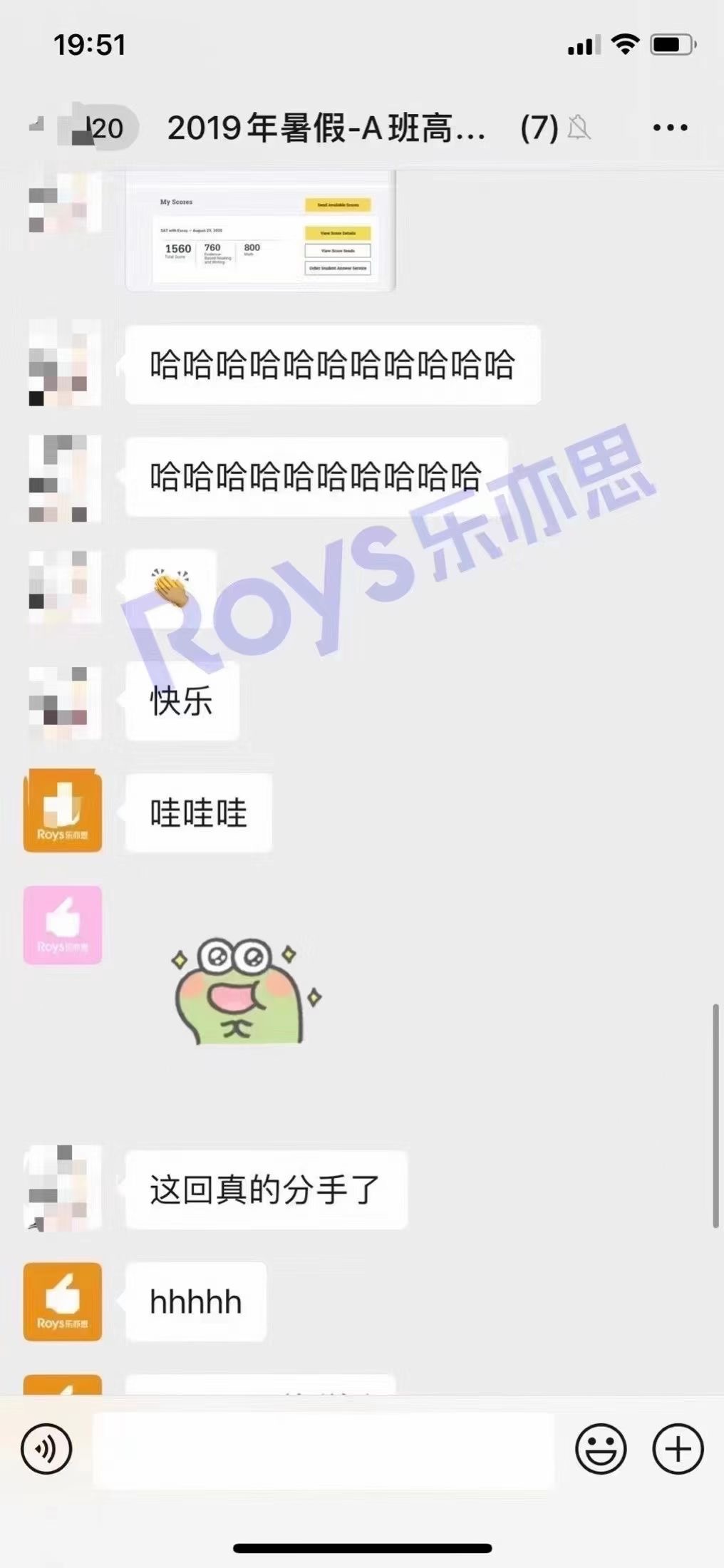 今天我們Roys樂亦思8月考?的試?第2位高?學(xué)分?員是來自?年去?暑假全程班A班的W?學(xué)同?,本次在北?參美?加考試,拿?了下?1560分的高分?。。?/span>