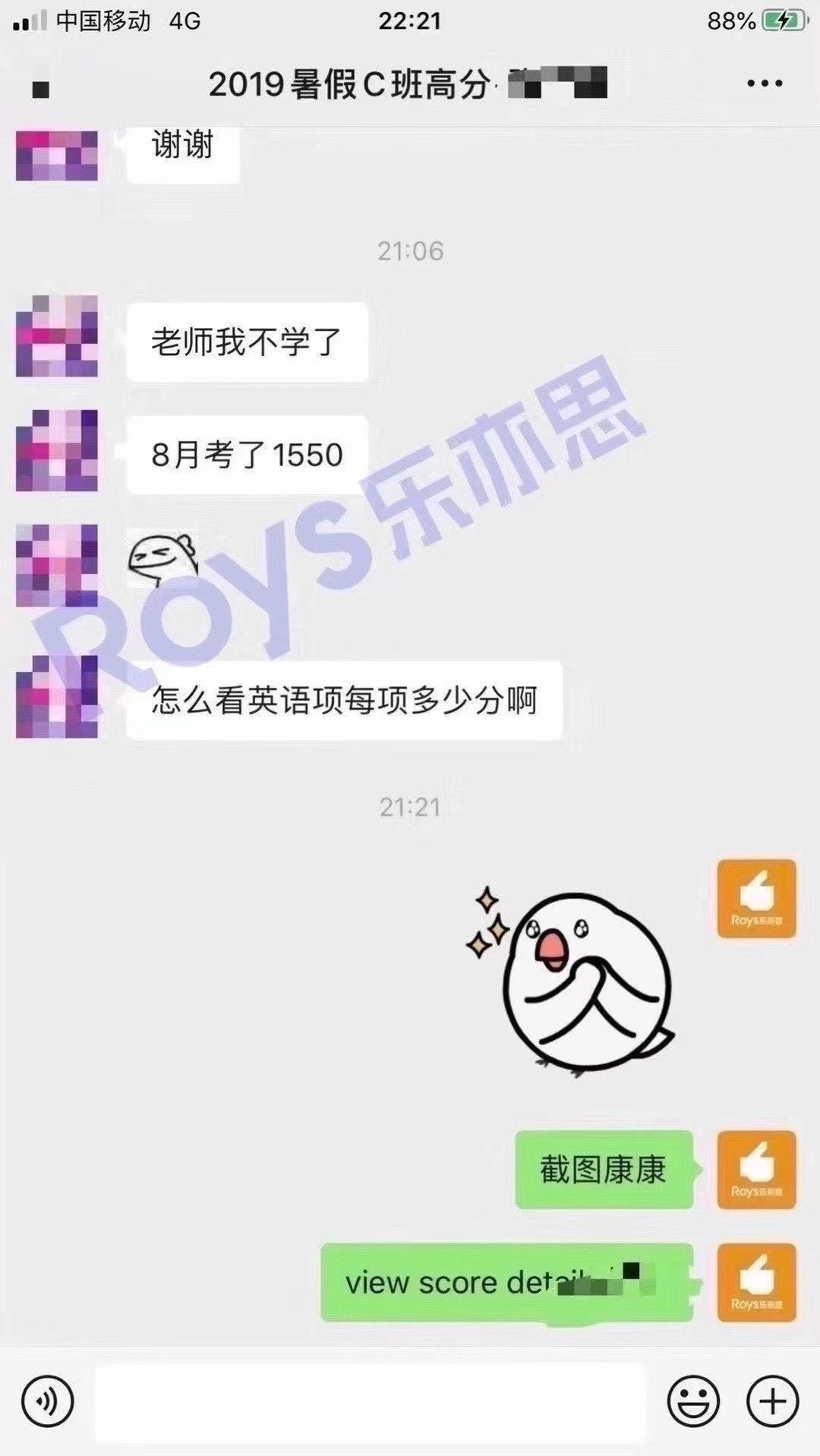 今?我天?們Roys樂亦思8月考試的第7位?分高?學員是來自去?暑年?假班的Z同學,課?期程?間積極配合,今?在年?老師不斷?進跟?和自己的努?下力?,