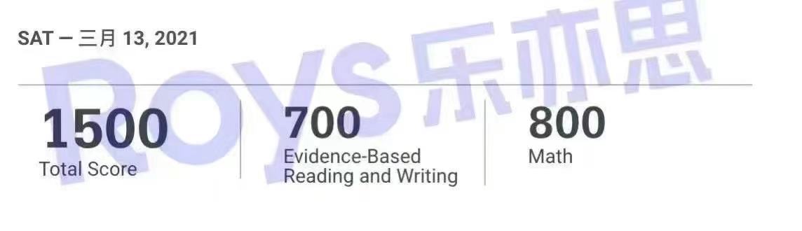 Roys樂亦思2021年3月SAT考試的第6位高分學(xué)員