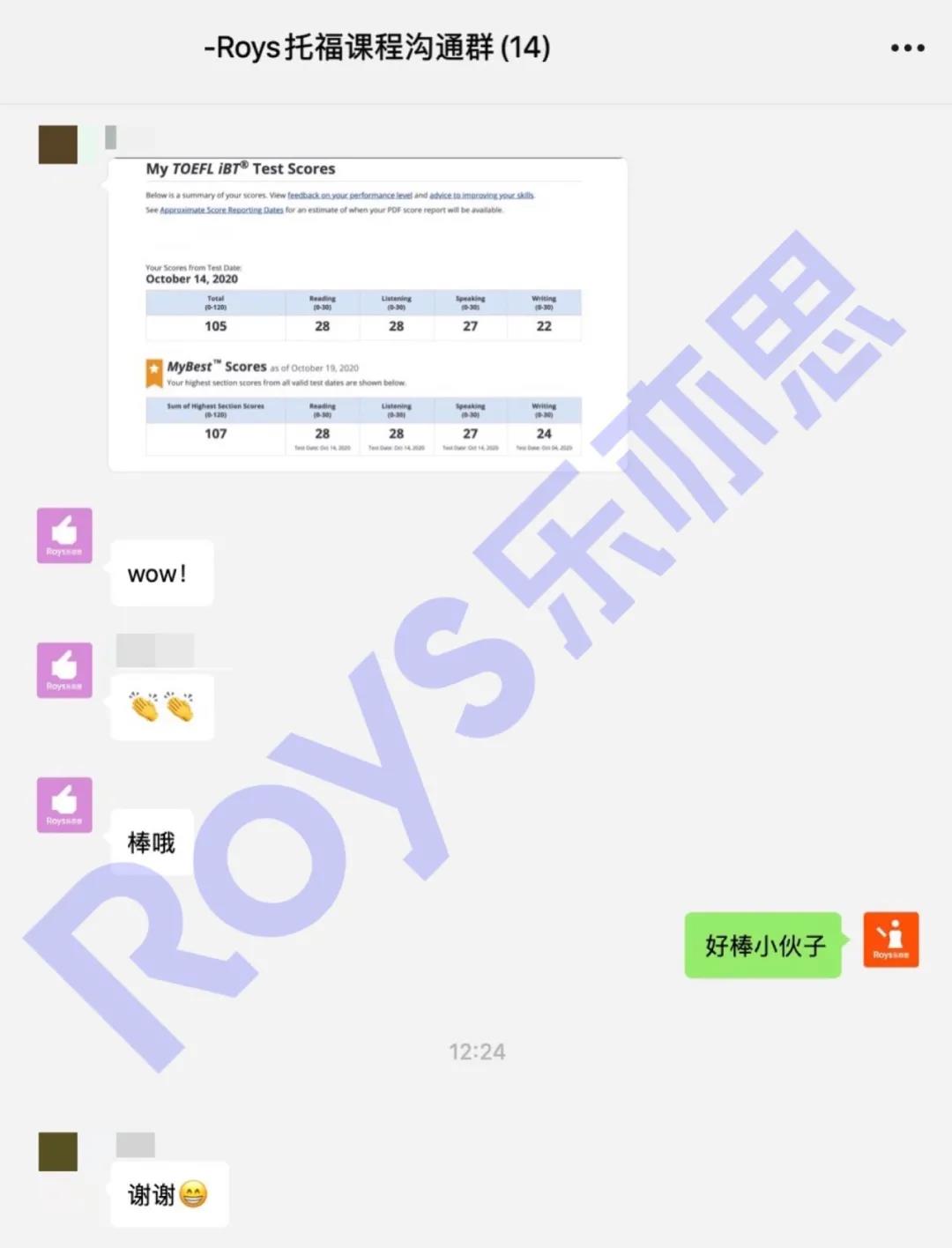 Roys樂亦思托福課程學(xué)員實現(xiàn)97到105的跨越