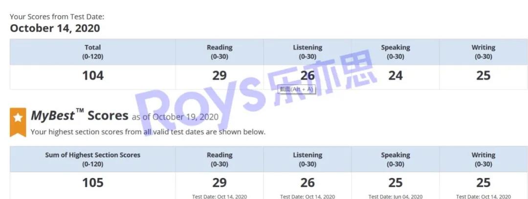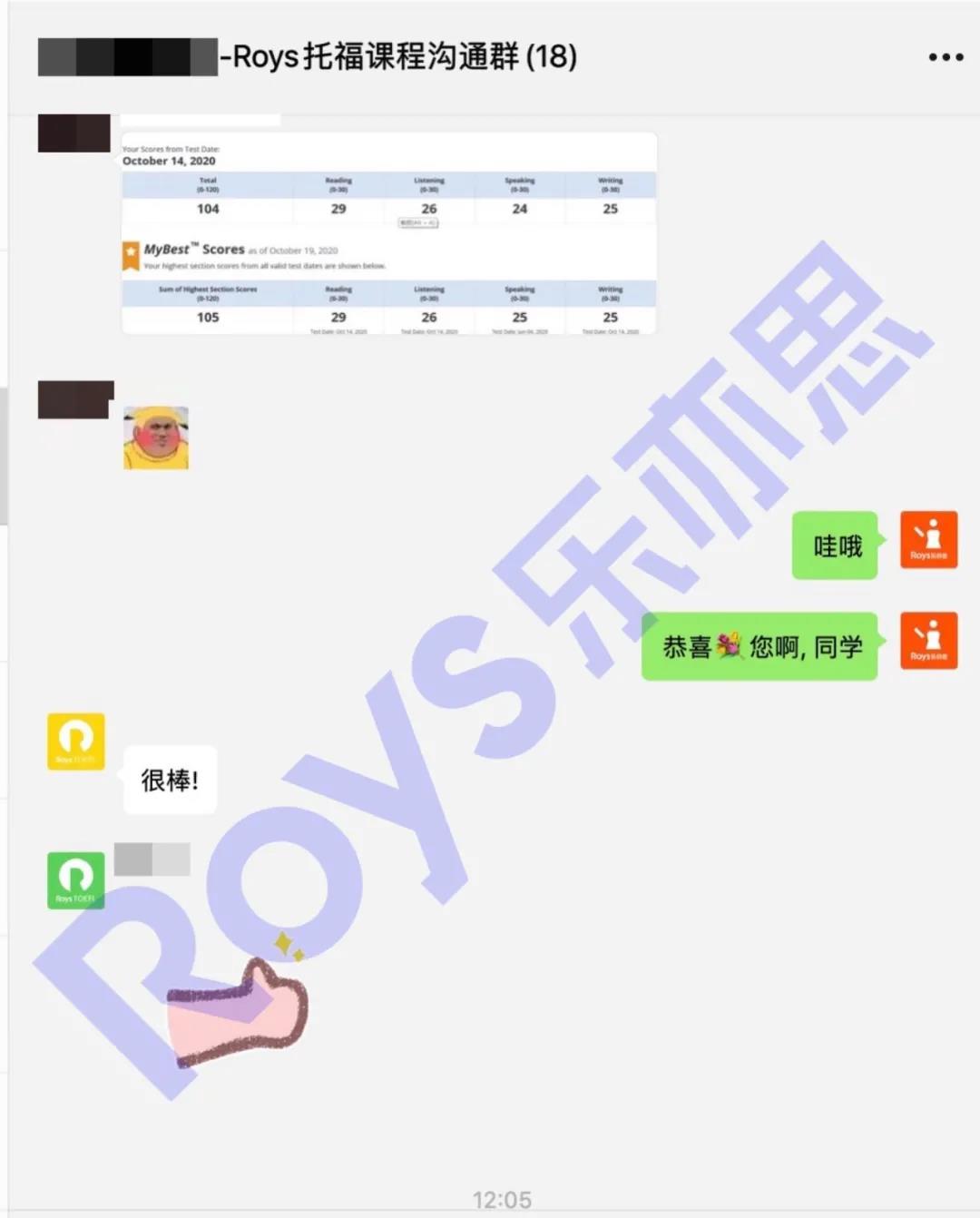 Roys樂亦思托福課程學(xué)員實現(xiàn)96到104的跨越
