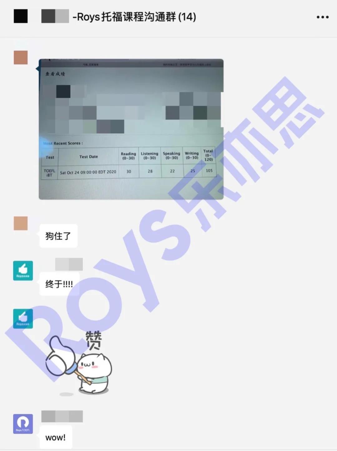 Roys樂亦思托福課程學(xué)員實現(xiàn)75到105的跨越