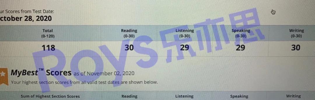 Roys樂亦思托福課程學員實現(xiàn)最高分,拿下118!