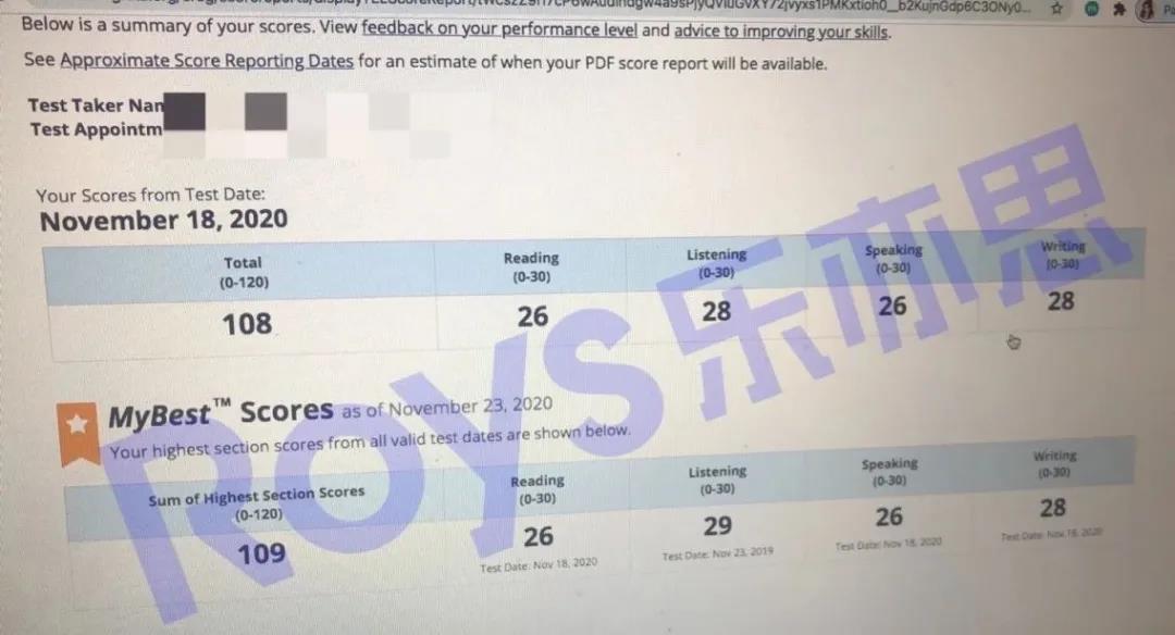Roys樂亦思托福課程學(xué)員實(shí)現(xiàn)104到108的跨越