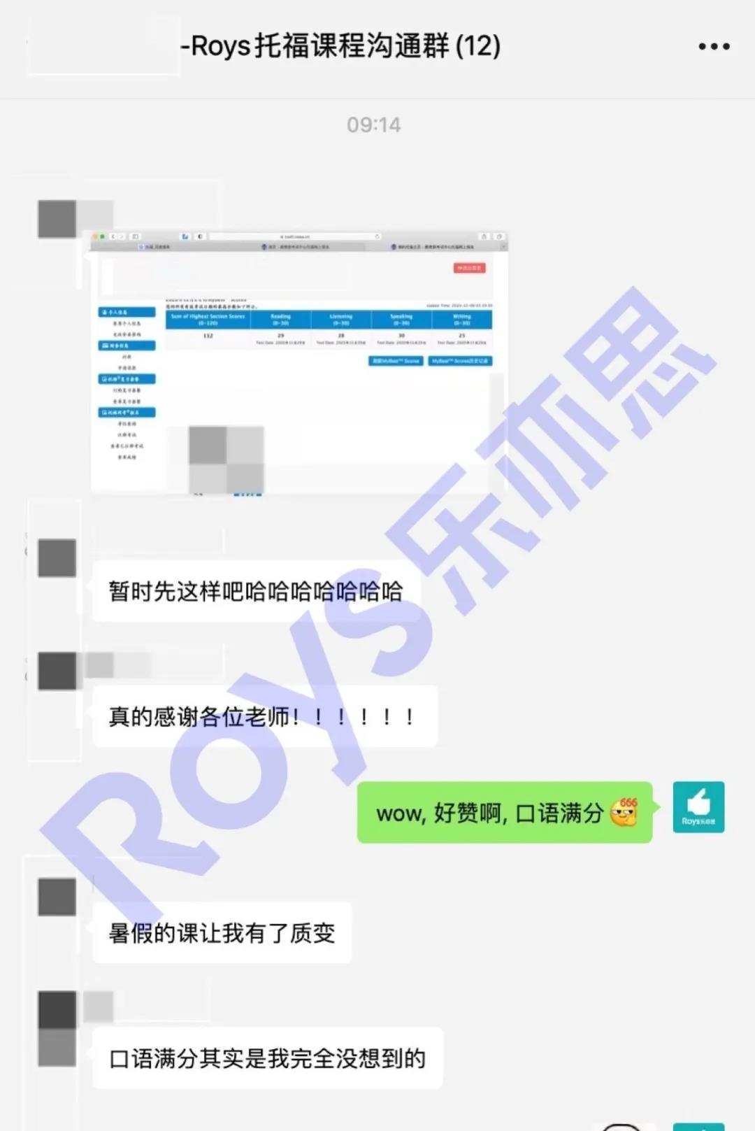 Roys樂亦思托福課程學員實現(xiàn)91到114的跨越