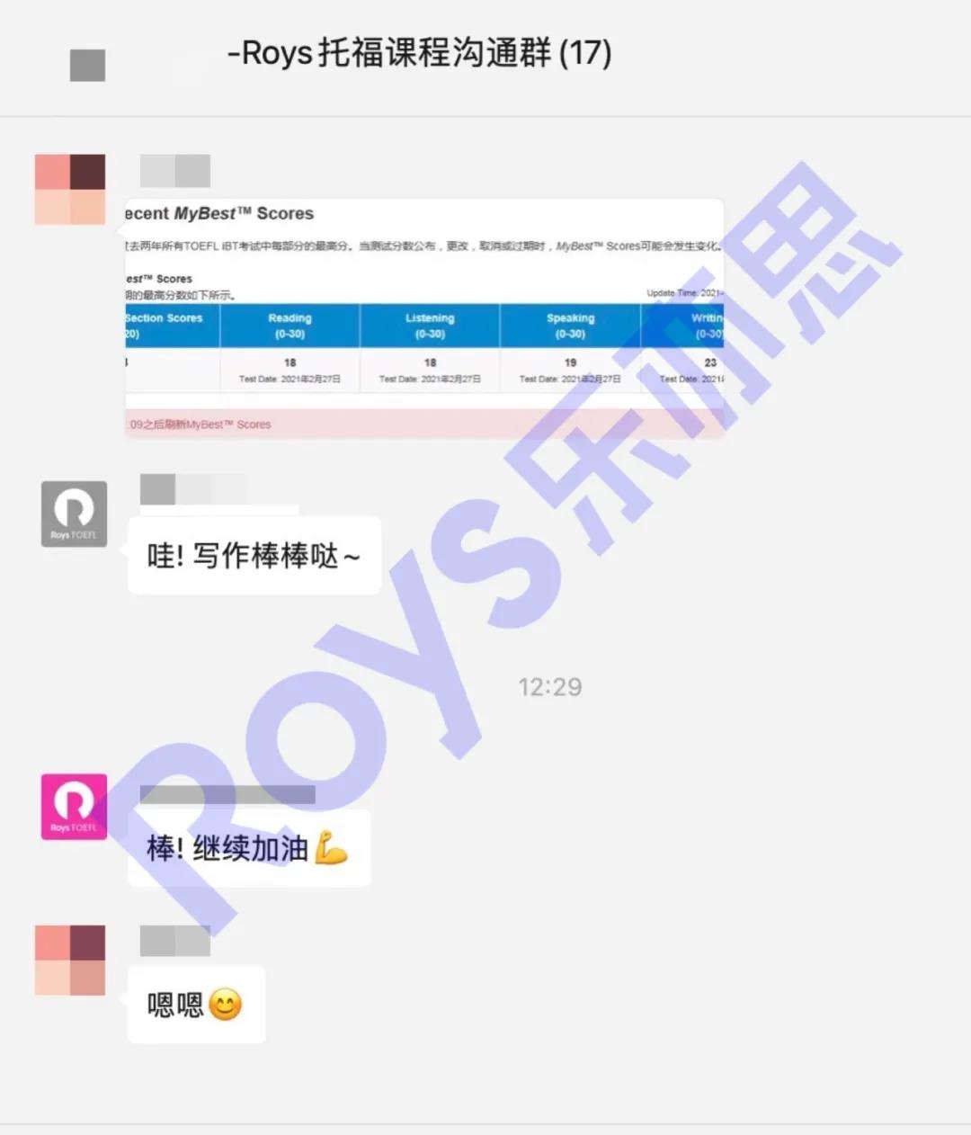 Roys樂亦思托福課程學員實現53到70的跨越,勤學和強化班學員進步巨大