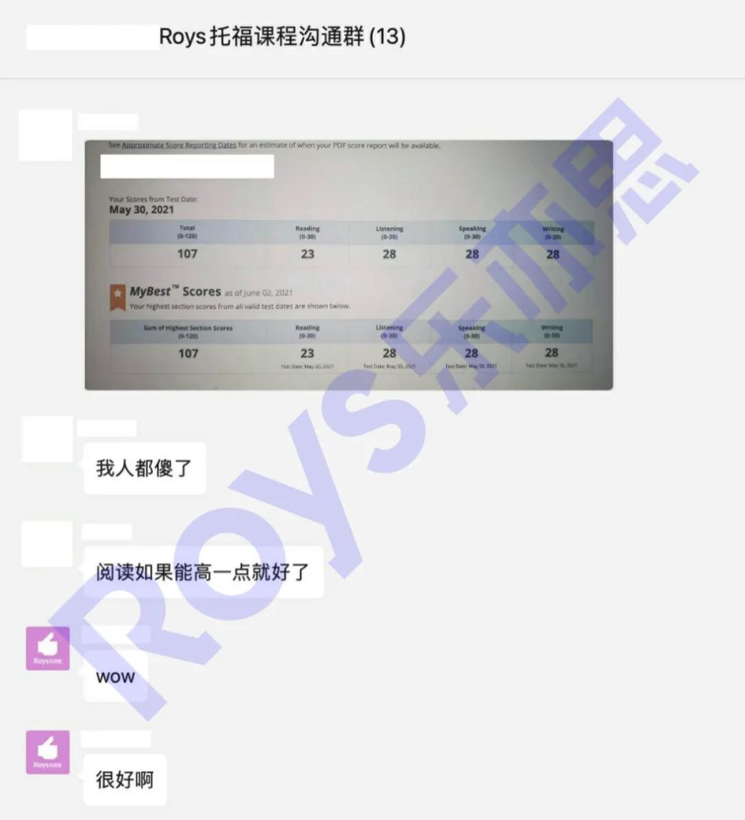 Roys樂亦思托福課程學(xué)員實(shí)現(xiàn)94到104的突破