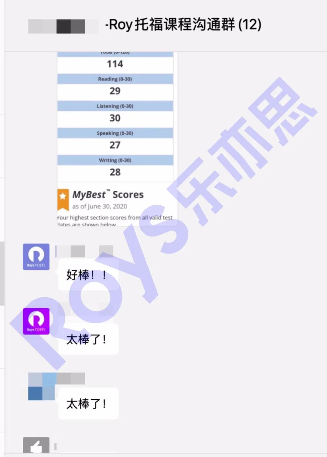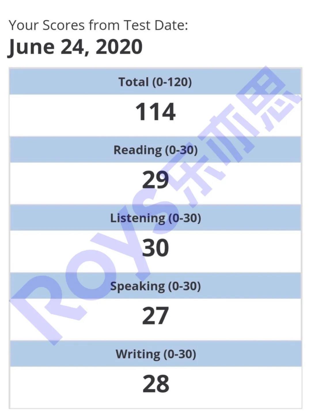 Roys樂亦思托福課程學(xué)員培訓(xùn)10天進步9分,獲114高分