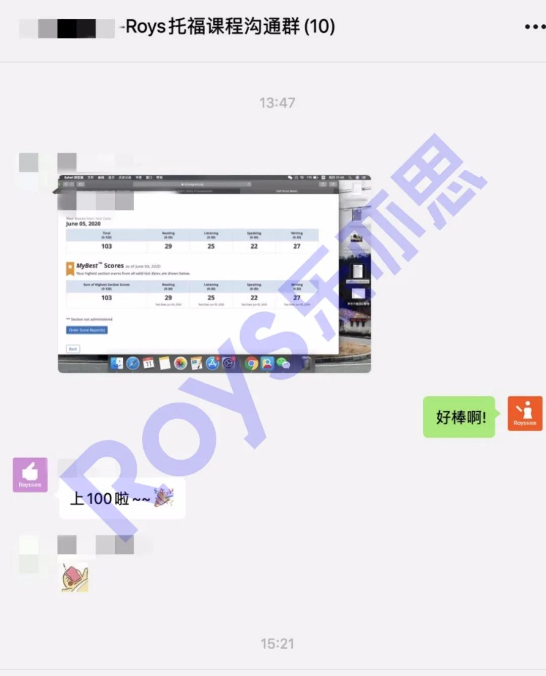 薛同學(xué)做到了! 通過一對(duì)一視頻集訓(xùn)及督導(dǎo)老師的持續(xù)跟進(jìn)下, 參加6月6日線上托福考試, 再次獲得進(jìn)步, 最終取得總分103, 進(jìn)步61分的好成績, 我們陪你朝下一個(gè)目標(biāo)繼續(xù)邁進(jìn), 創(chuàng)造奇跡!