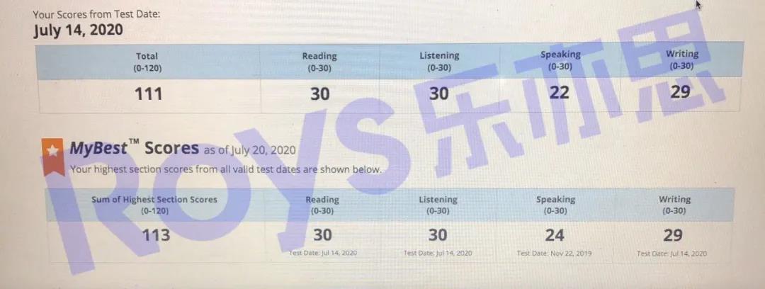 劉同學(xué)閱讀聽力滿分,總分?jǐn)孬@111。