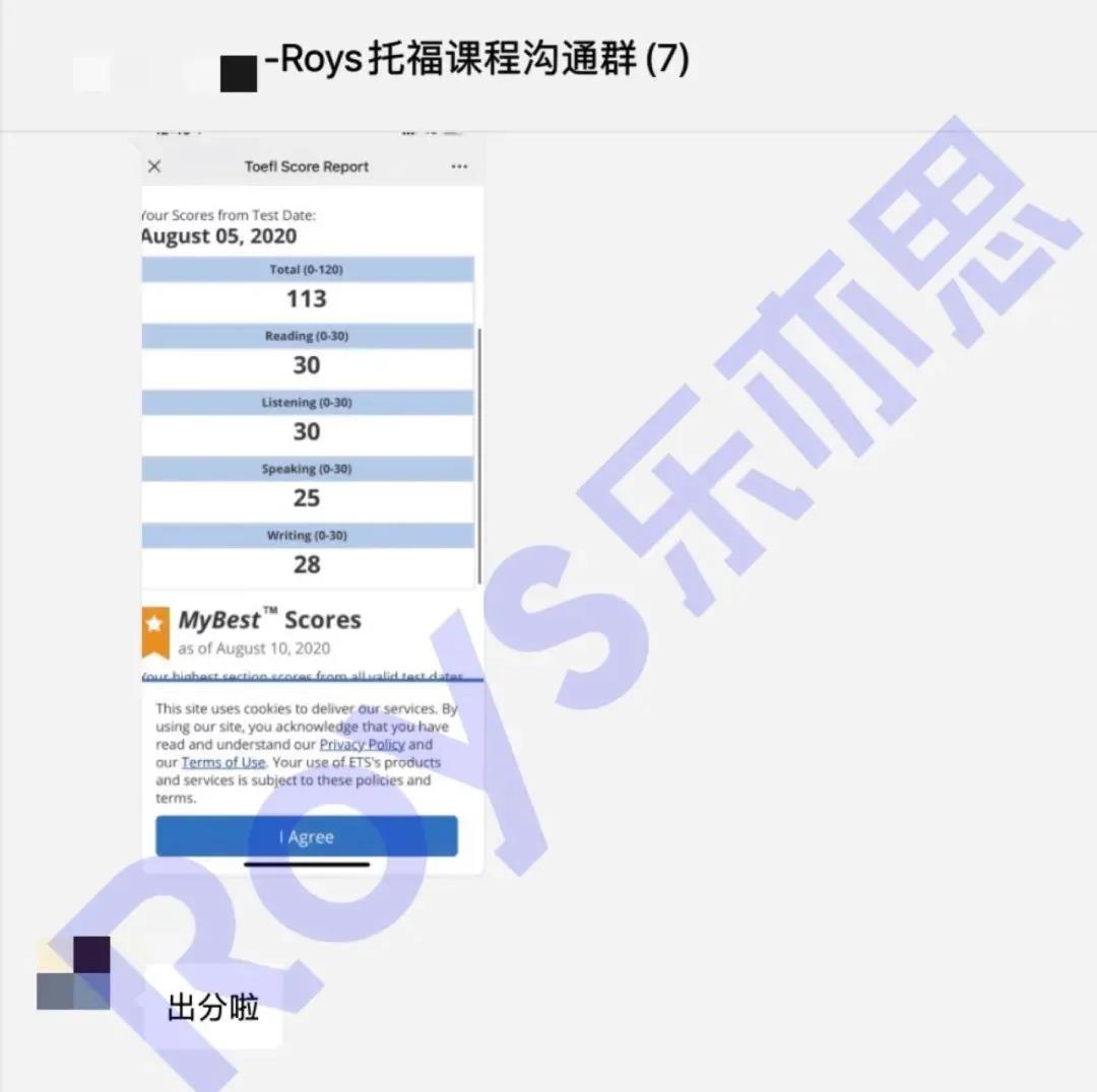 周同學(xué)參加樂亦思托福面授+視頻集訓(xùn)課程,每一天的努力和汗水成就了現(xiàn)在的跨越,向著下一個(gè)目標(biāo)115前進(jìn)吧。