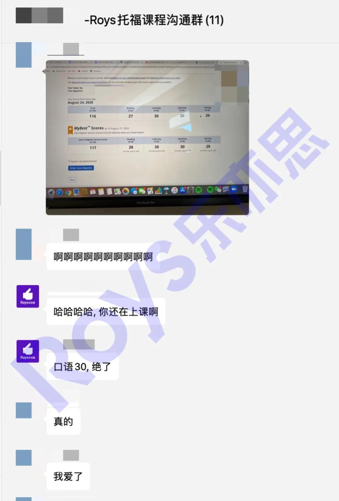 L同學(xué)在Roys樂亦思進行短短一周的密集培訓(xùn),實現(xiàn)口語30分滿分!寫作29分逼近滿分!