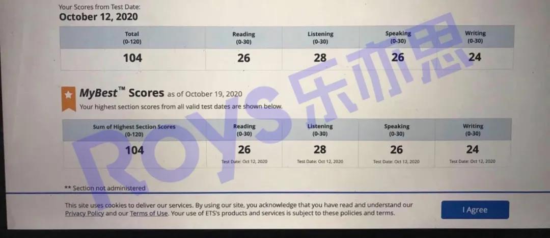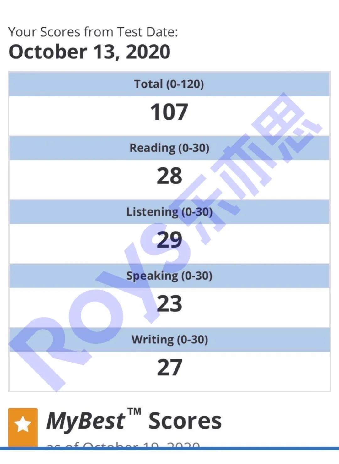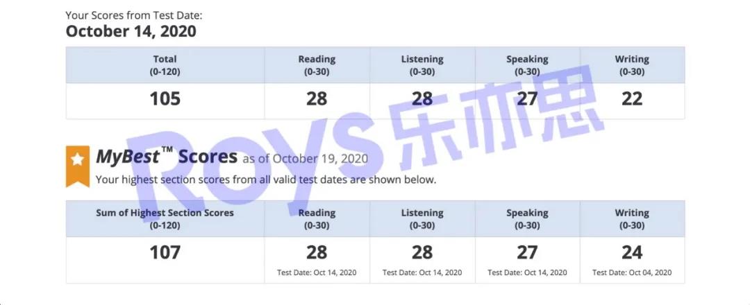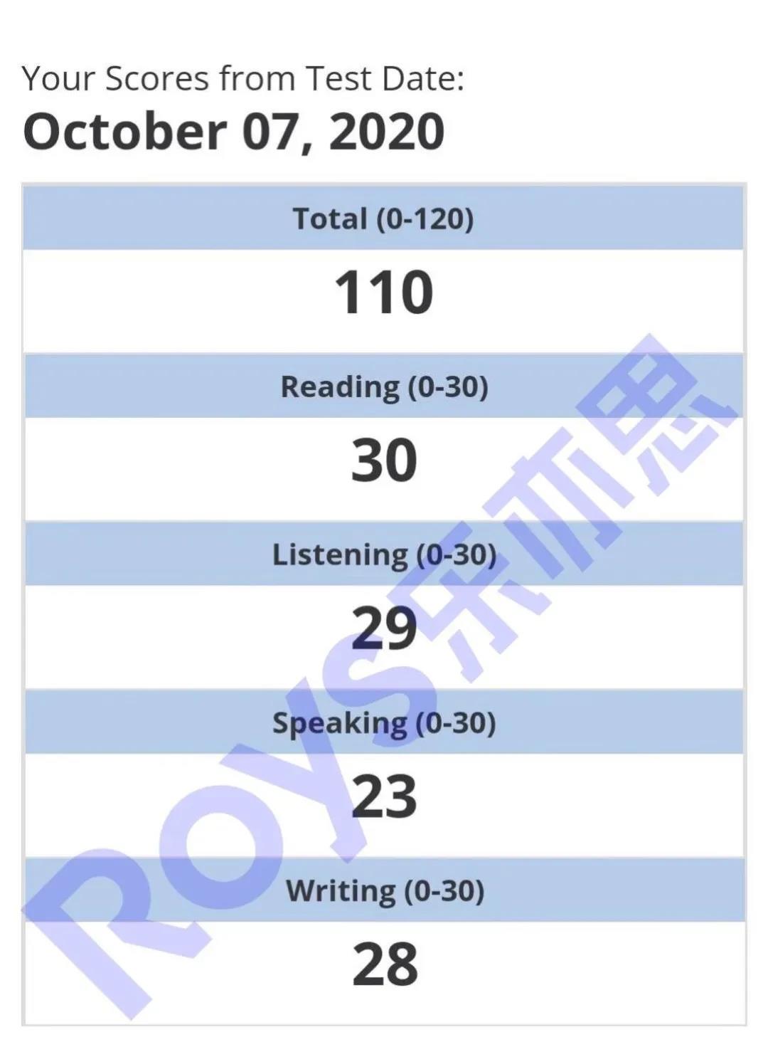 Roys樂亦思托福課程學員實現(xiàn)93到104的跨越
