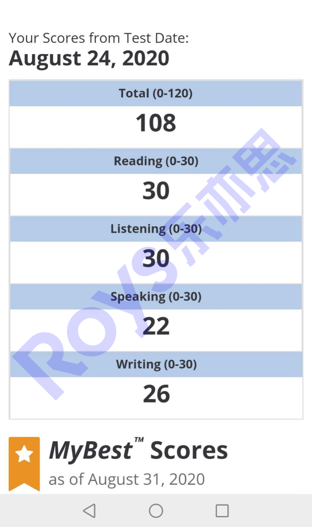 Roys樂亦思托福課程學(xué)員培訓(xùn)12天進(jìn)步14分