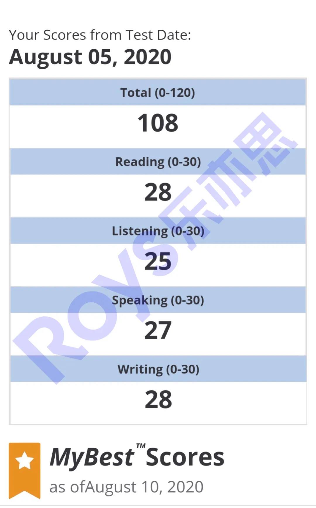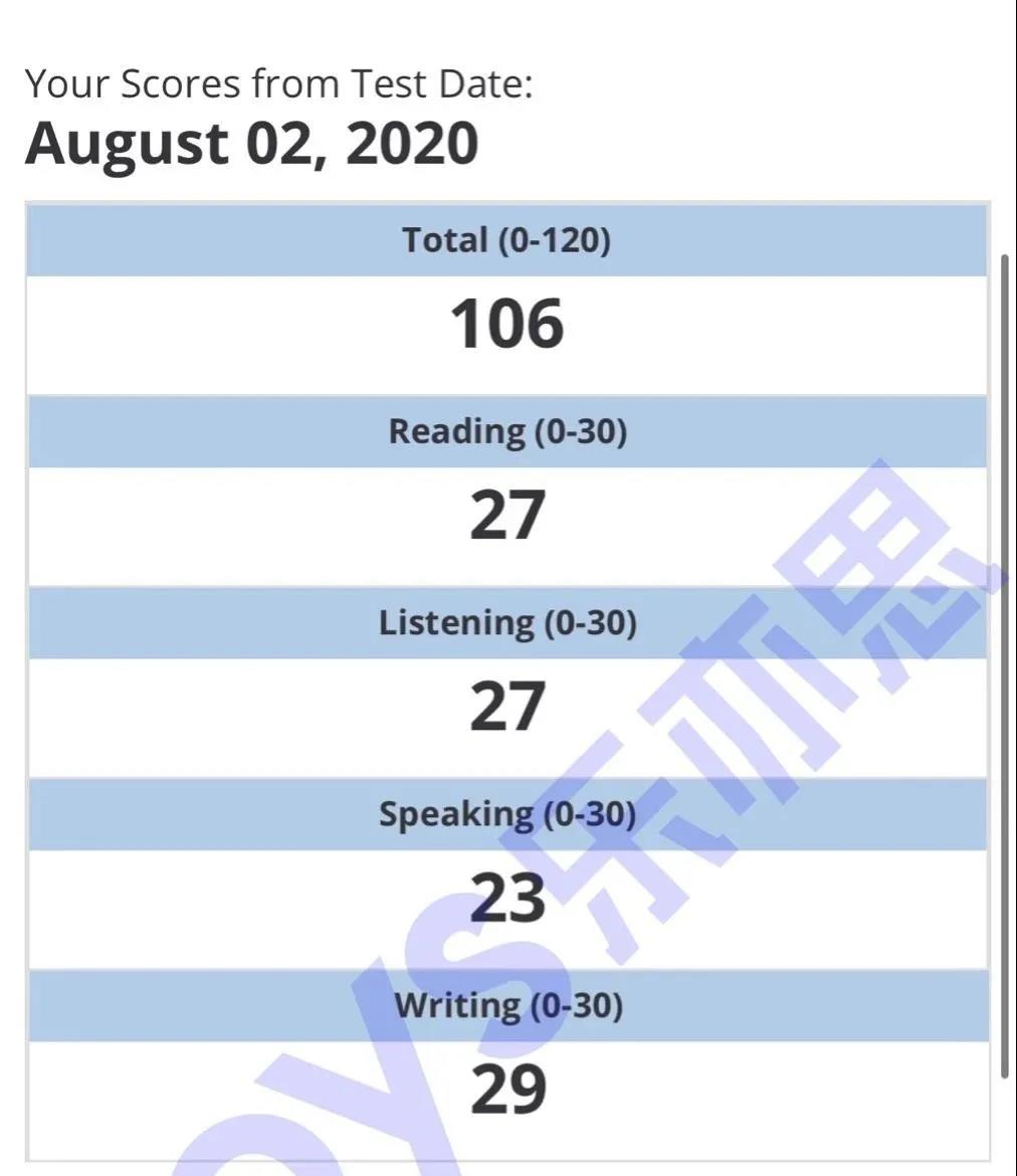 Roys樂亦思托福課程學(xué)員培訓(xùn)從85進(jìn)步到105分