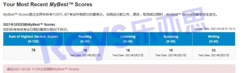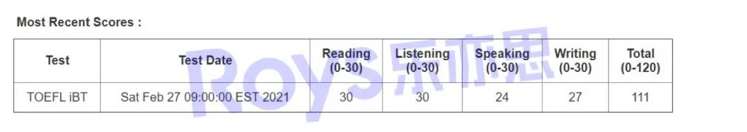 Roys樂(lè)亦思托福課程學(xué)員實(shí)現(xiàn)99到108的進(jìn)步
