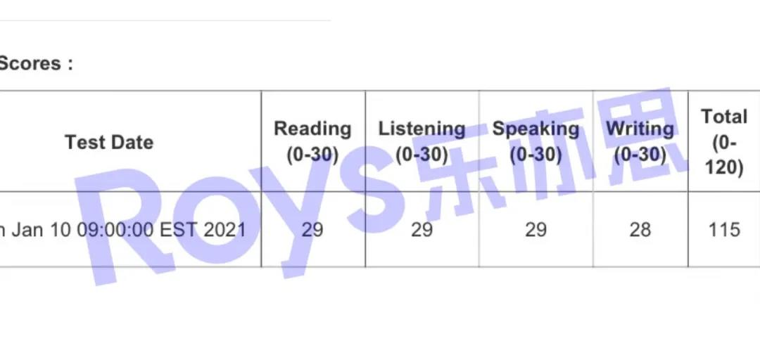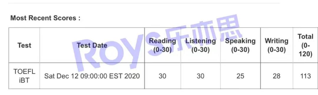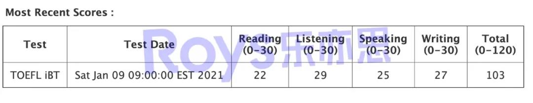 Roys樂亦思托福課程學員實現(xiàn)89到103的跨越