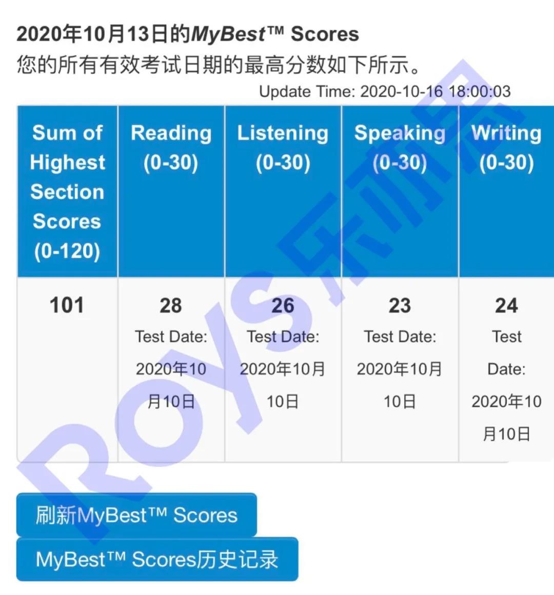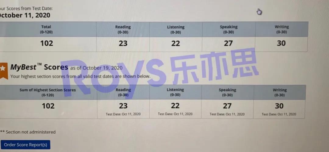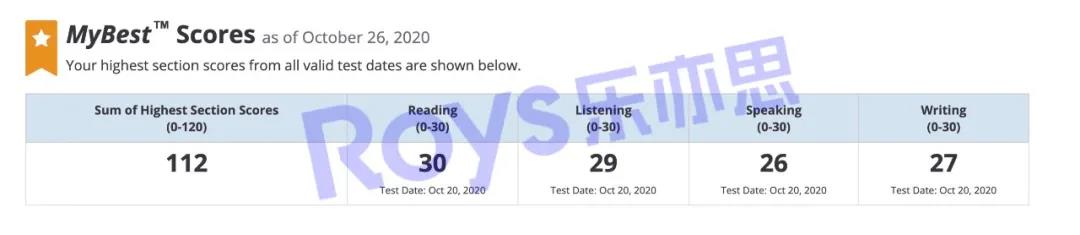 Roys樂(lè)亦思托福課程學(xué)員實(shí)現(xiàn)93到112的跨越