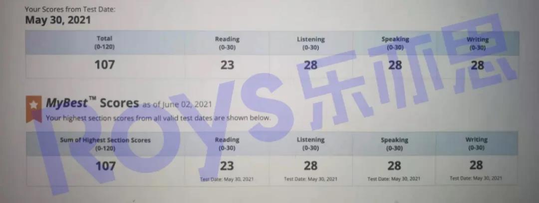 S同學(xué): 93 → 110培訓(xùn)前成績: 93(閱讀24, 聽力23, 口語24, 寫作22)培訓(xùn)后成績: 110(閱讀30, 聽力27, 口語27, 寫作26)共計(jì)培訓(xùn): 15天共計(jì)進(jìn)步: 17分