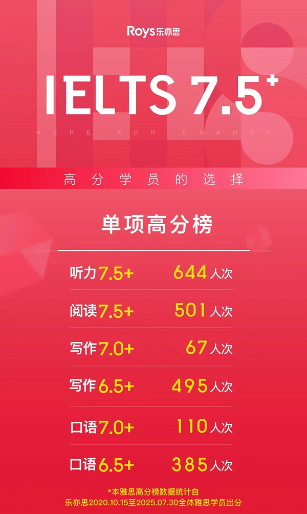樂亦思雅思的教師團(tuán)隊(duì),每位老師年均授課時(shí)長都超過1800節(jié),還自主研發(fā)和更新了149份教學(xué)教研材料。如果你也想早點(diǎn)拿到雅思高分,那一個(gè)適合的學(xué)習(xí)規(guī)劃就必不可少。還沒達(dá)到理想分?jǐn)?shù)的同學(xué)們,不知道如何應(yīng)對(duì)換題季的同學(xué)們,快來樂亦思雅思吧,這個(gè)秋天,我們一起沖刺高分!