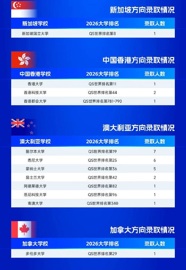 別擔(dān)心,樂亦思的A星計劃來助你一臂之力,幫你圓夢那些頂流院校!今年,無論是英國、香港、新加坡,還是澳洲、加拿大,我們的升學(xué)方向都全面開花,成果斐然。