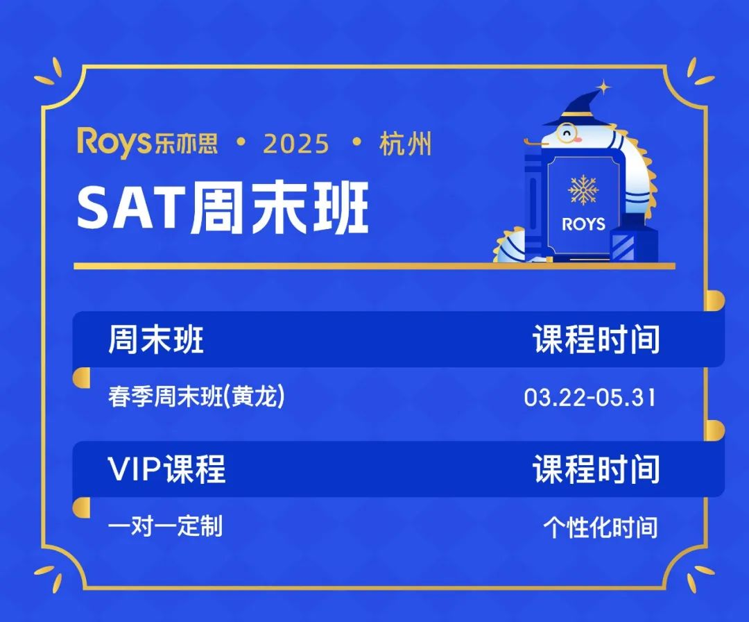 為此,我們精心籌備了2025年春季SAT課程,班型設置包括:SAT周末班、SAT考前??及?,以及VIP一對一定制課程,滿足不同基礎學員的個性化學習需求。