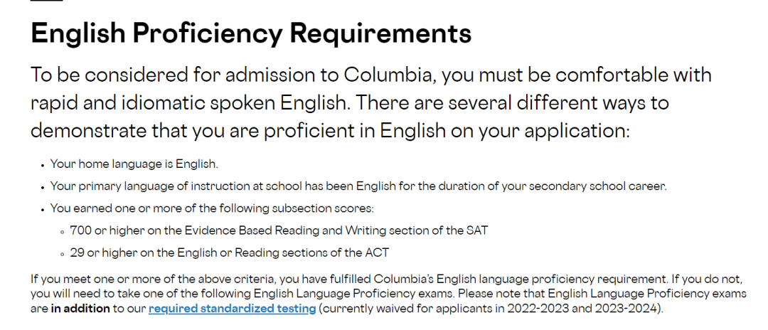 例如: 滿足SAT的EBRW部分取得700分以上的成績(jī), 申請(qǐng)哥倫比亞大學(xué)時(shí)可免除提交語(yǔ)言成績(jī).