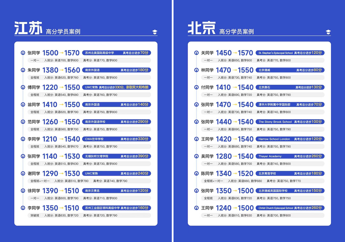 作為全中國首家且唯一一家擁有千位數(shù)SAT1500+高分學員的機構,我們用真實可溯的成績,詮釋了教學實力的真諦。