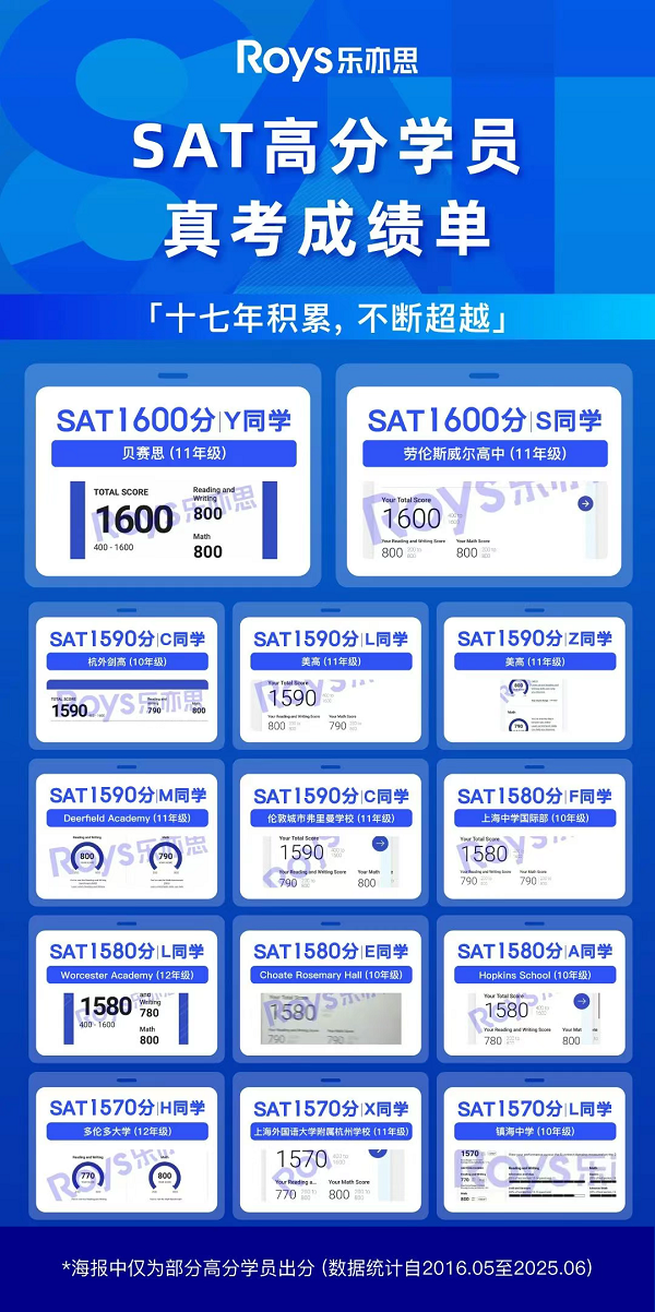 十七年來,樂亦思的足跡遍布五湖四海,學員來自浙江、上海、北京、香港、廣東乃至美國。他們或線下集訓,或線上交流,共同見證了從“小白”到SAT1500+的蛻變。