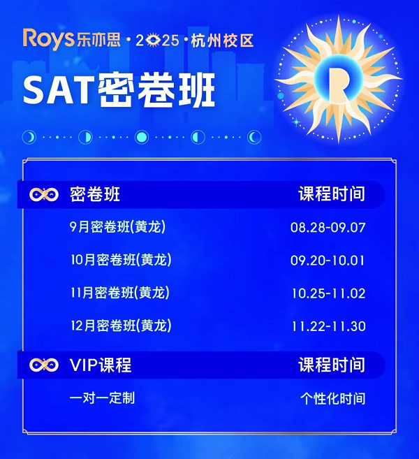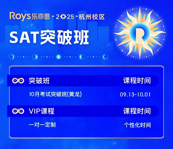 近日,樂亦思SAT秋季課程體系正式發(fā)布,為不同需求的考生量身打造了多樣化備考方案。課程體系全面覆蓋SAT全程班、密卷班、周末突破班以及VIP一對(duì)一定制課程,無論你是零基礎(chǔ)小白,還是沖刺1550+的高分選手,都能在這里找到適合自己的學(xué)習(xí)路徑。