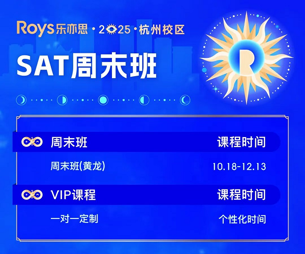 為了幫助大家更好地備考,2025樂亦思SAT秋季課程新鮮出爐啦!這次推出的班型十分豐富,涵蓋了SAT全程班、密卷班、SAT周末班、突破班以及VIP一對一定制課程。