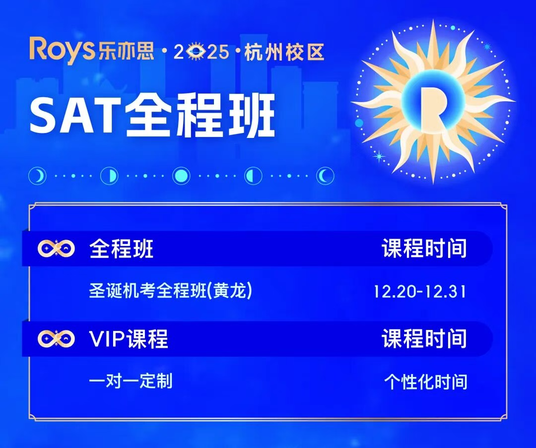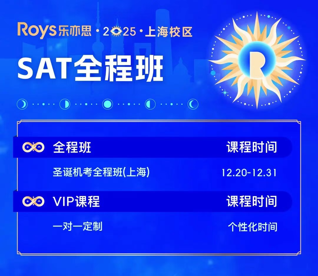 樂亦思還專門為想在圣誕節(jié)沖刺的同學開設了王牌全程班,這可是Roy老師親自授課的唯一課程哦!從零基礎到1550+的完整備考干貨都有,能幫“SAT全分數(shù)段”的學生系統(tǒng)性學習。