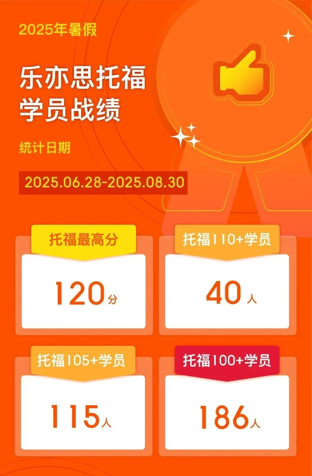 在六月到九月初這段備考黃金期,樂亦思托??芍^收獲滿滿,連續(xù)五批學(xué)員以高分姿態(tài)閃耀登場(chǎng)。至此,托福項(xiàng)目累計(jì)出分批次已達(dá)一百三十一批,成績(jī)斐然!