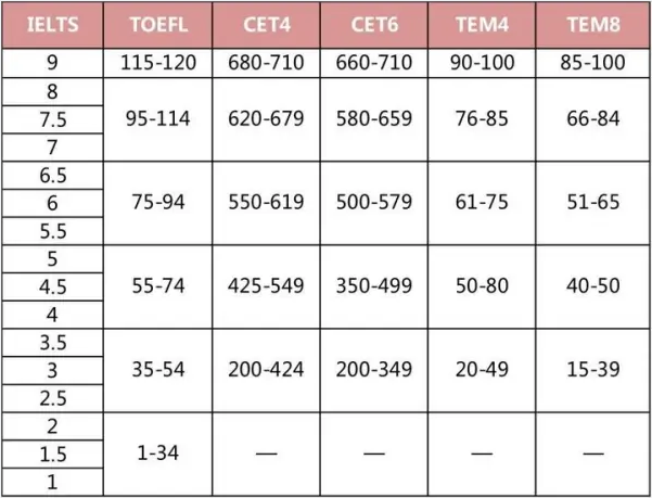 但是事實上,四六級與托??荚囀怯泻艽蟛煌?。與托福相比,四六級無論是從單詞量,還是從聽說讀寫能力等方面來看,難度都更低。且兩個考試的考察內(nèi)容是不同的,四六級考察的是聽讀寫譯,而托??疾斓氖锹犝f讀寫,因此分?jǐn)?shù)表只能做一個參考。